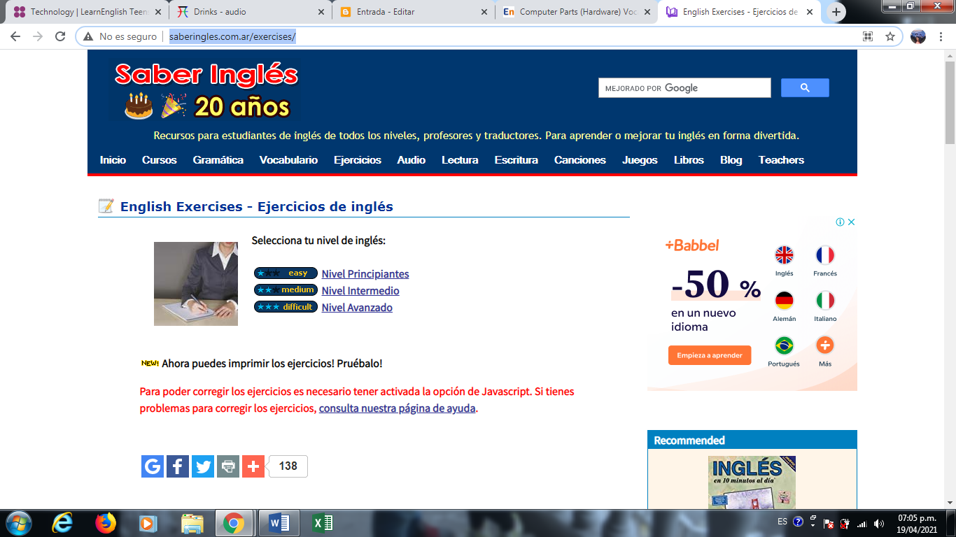 http://saberingles.com.ar/exercises/ (PAGINA PARA CURSO CORTO INGLES TODOS LOS NIVELS )